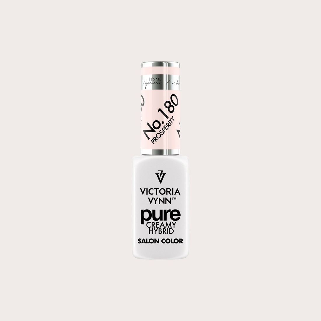 El Pure Creamy Hybrid 180 Prosperity de Victoria Vynn es un esmalte híbrido profesional en tono rosa claro semitransparente, suave, delicado y luminoso, ideal para manicuras naturales y estilos clean.