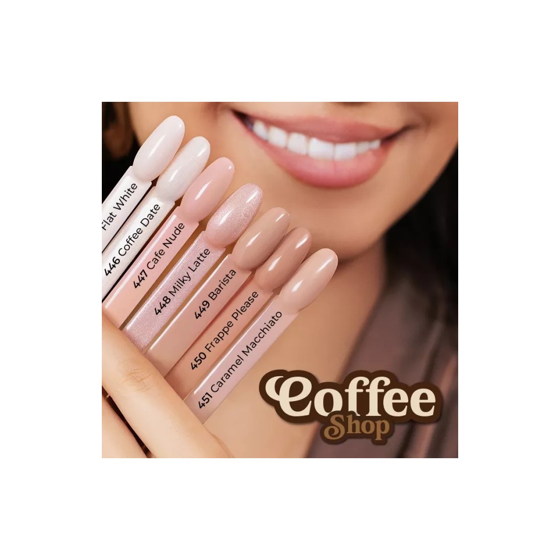 La colección Coffee Shop se caracteriza por tonos neutros, cálidos y versátiles, ideales para manicuras de diario, looks elegantes y estilos minimalistas que nunca pasan de moda.