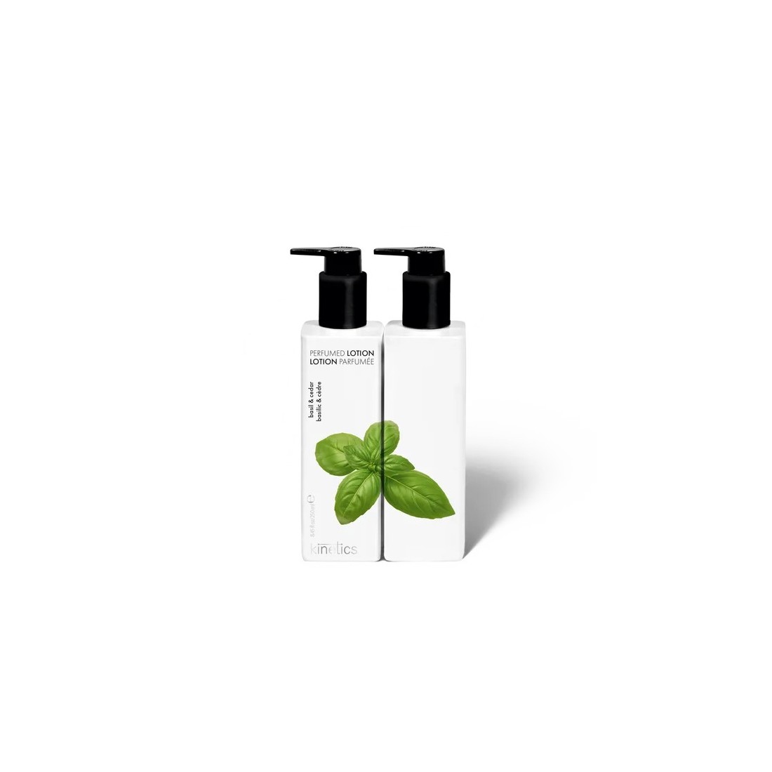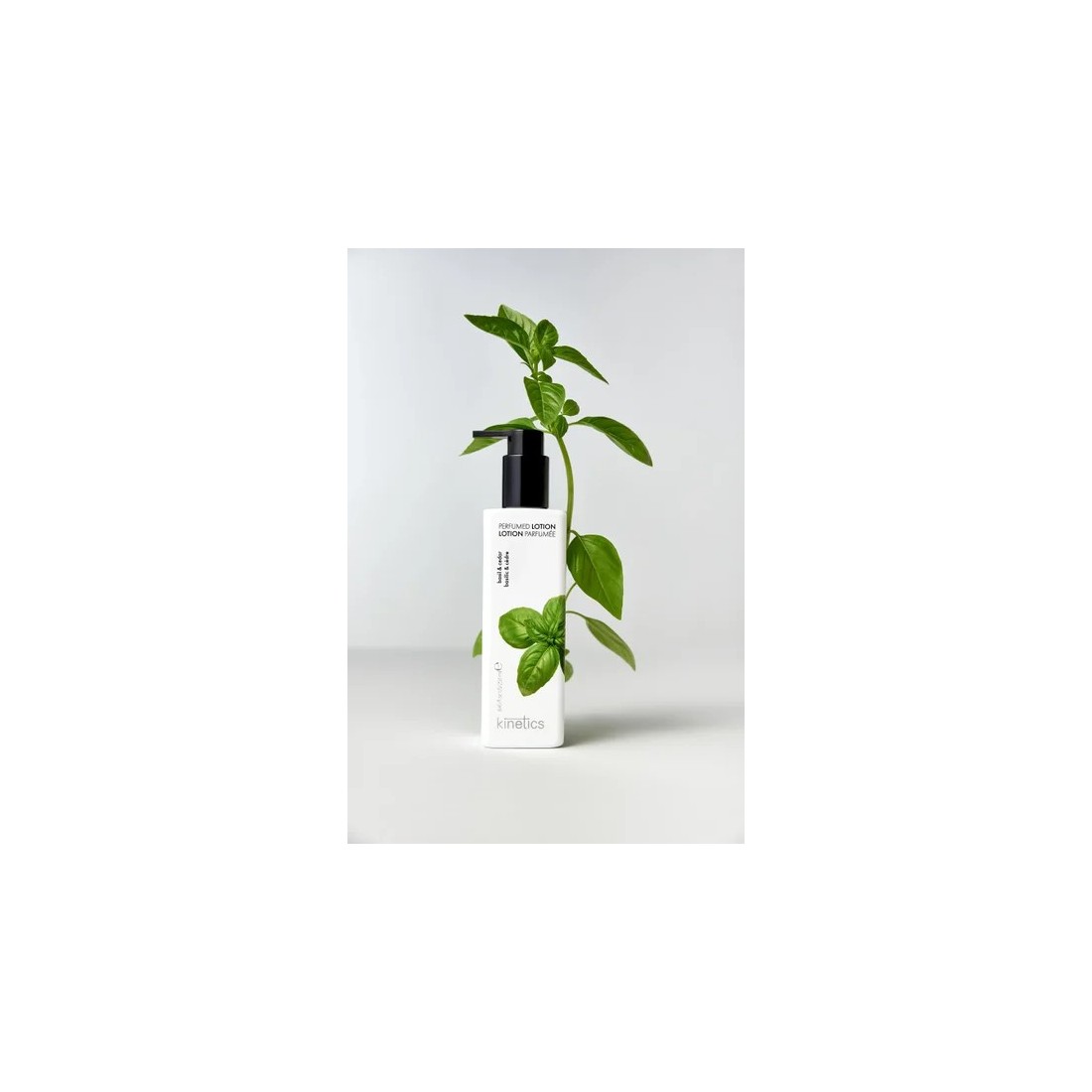 Perfumed Lotion Basil & Cedar combina hidratación profunda con un perfume herbal fresco creado en Grasse, la cuna del perfume francés. Su aroma se abre con tomillo fresco, clavo especiado, albahaca y mirto aromático, generando una sensación inmediata de claridad y calma. En su corazón, salvia, cilantro y cardamomo aportan calidez y sofisticación natural. La base de madera de cedro, rosa y manzanilla se asienta suavemente sobre la piel, dejando una estela reconfortante y equilibrada. Su textura ultraligera se absorbe rápidamente sin dejar sensación grasa, gracias a la manteca de karité, el aceite de argán y la vitamina E, que mantienen la piel hidratada, suave y protegida. Forma parte de la colección de 26 lociones perfumadas de Kinetics, conocidas por su diseño blanco icónico y su calidad aromática profesional. Ideal para aplicar en manos, brazos y cuerpo, aportando hidratación diaria y un perfume fresco que evoluciona durante horas.