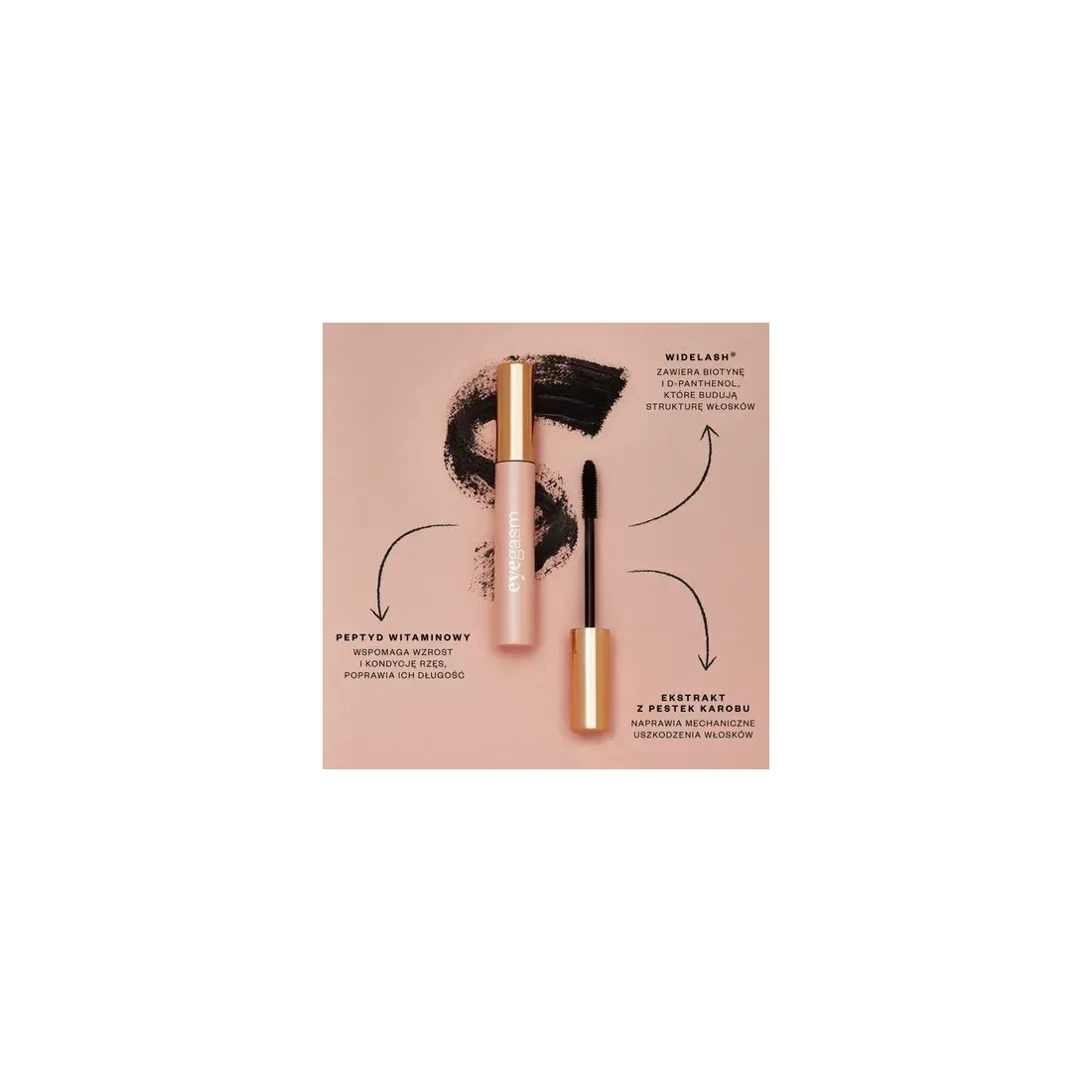 Eyegasm Black no solo proporciona volumen, longitud y curvatura, sino que también favorece unas pestañas más fuertes, densas y saludables con el uso continuado.