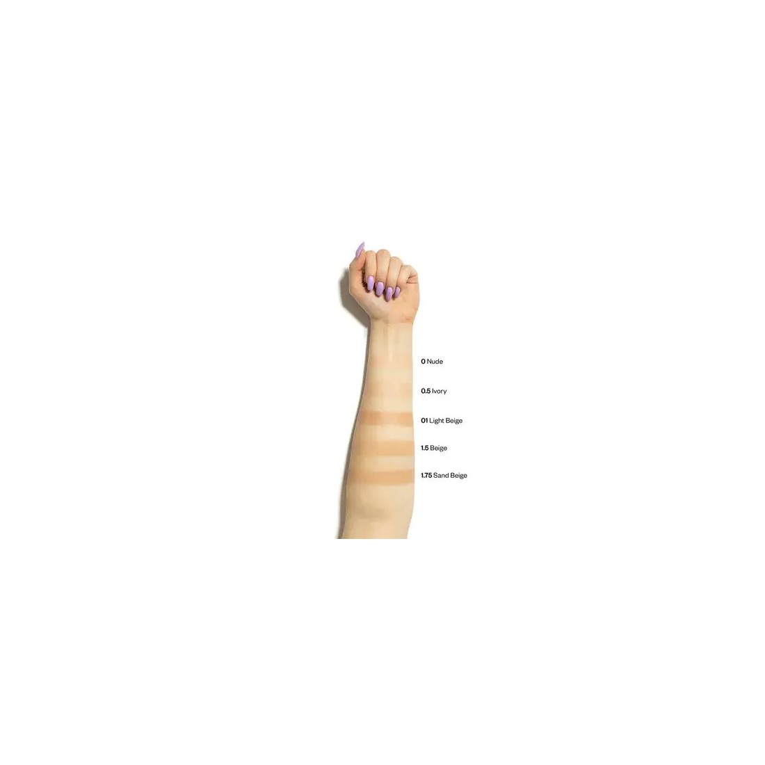 Aqua, Cyclopentasiloxane, Paraffinum Liquidum, Polyisobutene, Aluminum Starch Octenylsuccinate, Lauryl PEG/PPG-18/18 Methicone, Sodium Chloride, Glycerin, Propylene Glycol, Tocopheryl Acetate, Panthenol, Squalane, Triethoxycaprylylsilane, Aluminum Hydroxide, PEG-8, Tocopherol, Phenoxyethanol, Ethylhexylglycerin, Ascorbyl Palmitate, Ascorbic Acid, Citric Acid, [+/-: CI 77891, CI 77492, CI 77491, CI 77499].