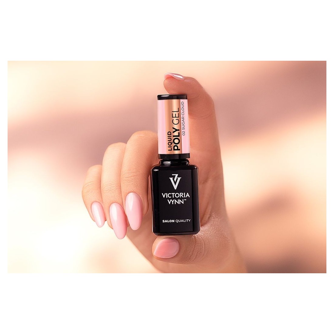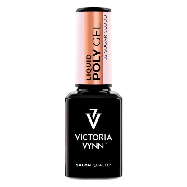 Poly Gel Liquid 02 Sugar Cloud en 15 ml, tono rosa frío y suave, combina resistencia y flexibilidad, ideal para extensiones, retoques y técnicas "one drop", con acabado natural y duradero.